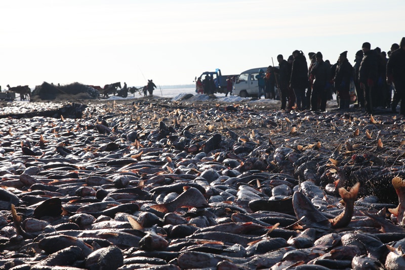 2015年1月17日,查干南湖渔场冬捕单网鱼产量达52万斤,创历史新高。