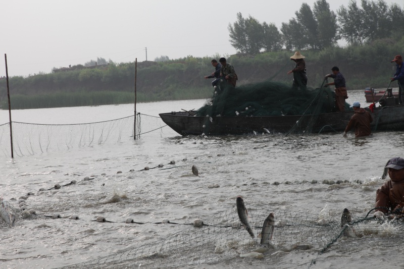 拉网捕鱼又称大拉网捕鱼,是拉网中的一种大型捕捞网具,以岸滩或冰上为基地捕捞沿岸或冰下水域鱼类的作业方式之一,也是世界沿海浅滩和内陆水域广泛应用的一种捕捞方式。目前,查干南湖为了渔业资源可持续发展已经取消了夏季明水拉网生产,主要以冬季冬网捕鱼为主。